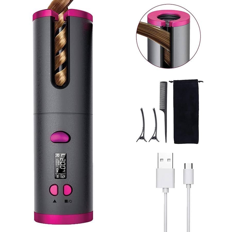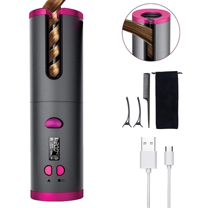 Simply insert 2cm width hair strands into the 19 mm ceramiccoated curling chamber, select your temperature, time and curl direction on the large LCD display, then press start – the curler does the rest. Achieve slight, soft or strong curls with ease, while self-regulating heating ensures gentle, consistent results for all hair types. Cordless and rechargeable, it delivers up to 50 minutes of styling after just 4 hours of charging. Compact, portable, includes a carry bag, comb, clips and USB cable – perfect for home or on-the-go styling. 6 temperature heat settings.