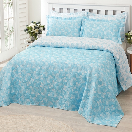 This pretty bedspread features a flutter of butterflies – and two ways to enjoy the dainty design. A print of pale blue on white on one side with white on pale blue on the other means you can refresh the look of your bedroom any time you choose. Made from polycotton filled with polyester, it fits Single, King Single, Double, Queen and King size beds. You can also add the reversible pillowcases to mix or match. Queen size pictured on a double bed.