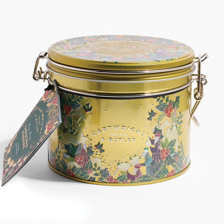 UK favourite Cartwright & Butler have been creating exceptional treats for 115 years. This traditional Christmas pudding is topped with almonds, rich with candied and dried fruits, nuts and spices, and presented in a distinctive reusable tin. 454g.