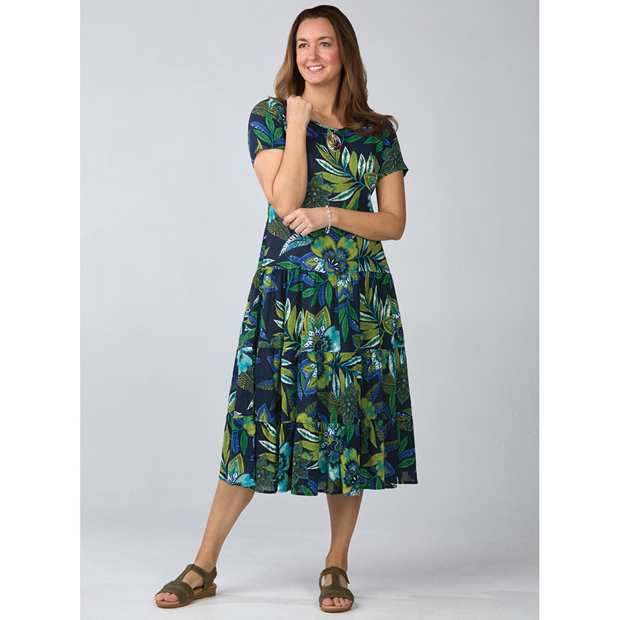 A light dress with tiered full skirt. Relaxed fit to suit all body shapes. 100% Crinkle Cotton