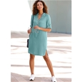 Pure, soft viscose modern shirt dress with collar, small V and 3/4-length sleeves that can be rolled up thanks to the button tab. The sophisticated pleat at the back makes it wonderfully playful and loose. With side slits at the rounded hem. 100% Viscose.