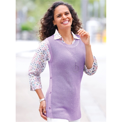 The perfect throw on when there is just a bit of chill in the air. This cover up is knitted into shape and sleeveless for a smart yet casual layered look. Button detail down the sides of this cover up and long length. 50% Acrylic, 50% Cotton.