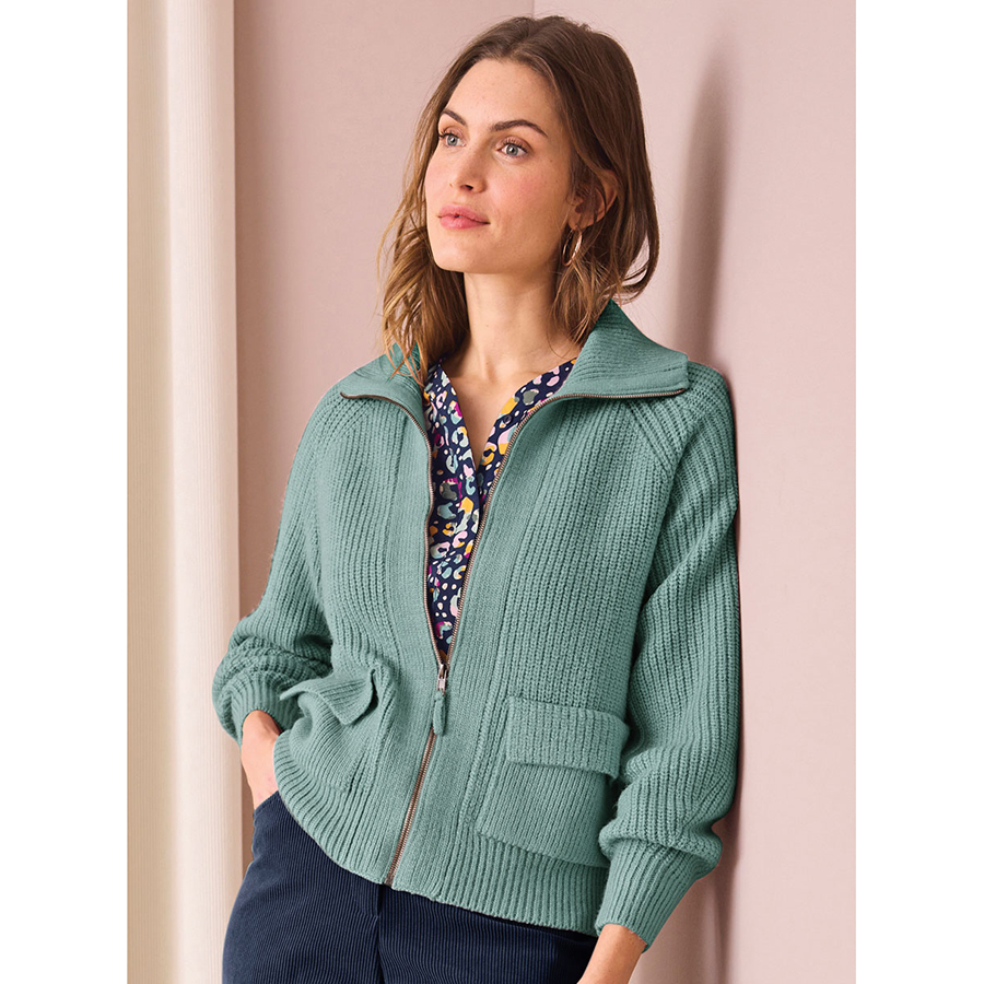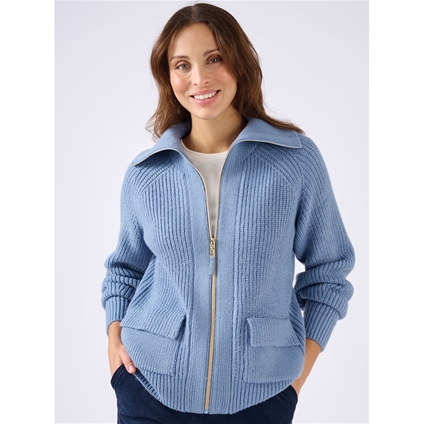 This zipped sweater offers warmth and comfort with its Thermolactyl® knit. Featuring ribbed textures, a stand-up collar and two flap patch pockets, it’s ideal for lounging or casual wear. 88% Acrylic, 12% Polyester.