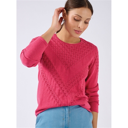 Soft, lightweight knit with Thermolactyl® warmth, perfect for chilly days, featuring a feminine chevron pattern. 48% Polyamide, 35% Polyester, 11% Acrylic, 6% Wool.