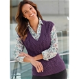 Elaborately knitted vest with a mix of purl knit, cable and diamond patterns. The back is knitted in plain knit. Stretch V-neck and ribbed hem. 50% Acrylic, 50% Cotton.