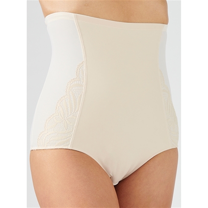 Featuring a high-rise silhouette that gently shapes through the waist and tummy, this brief delivers a sleek, seamless look under clothing. Delicate lace panel details at the sides add a touch of elegance without compromising on performance. 82% polyamide, 18% elastane.