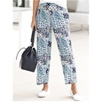 In a trendy culotte style: print pattern trousers in summery woven fabric with a great patchwork print in aqua tones. With a comfortable all-round stretch waistband and shaping darts at the back. Fashionable wide leg, made for comfort. 100% Viscose.
