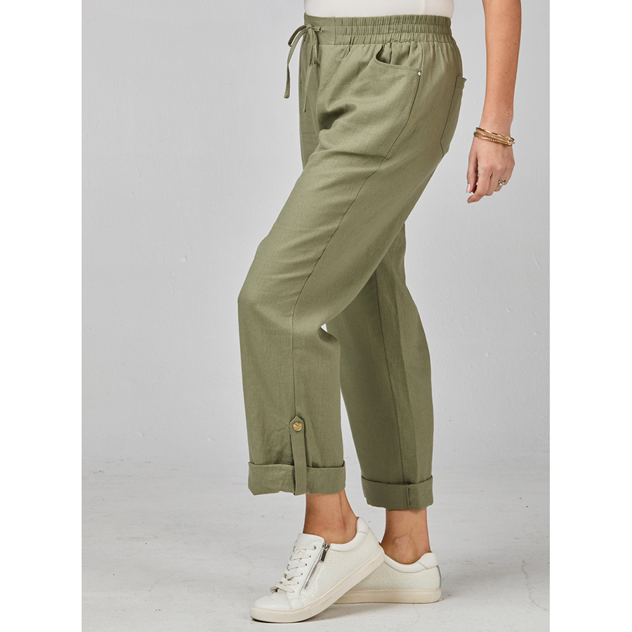 Effortlessly casual wide leg pant with chic rolled cuff detail in wonderfully soft viscose quality. Features elastic waist for a comfortable fit and easy to match colours. Two side pockets. 55% Linen, 45% Viscose.