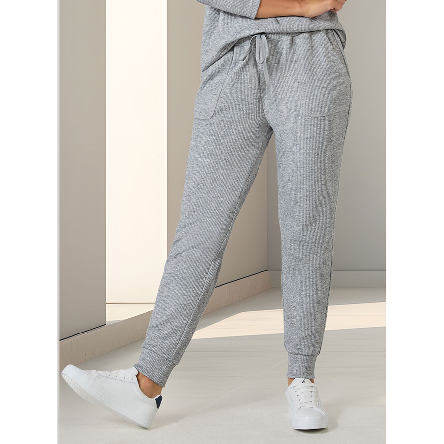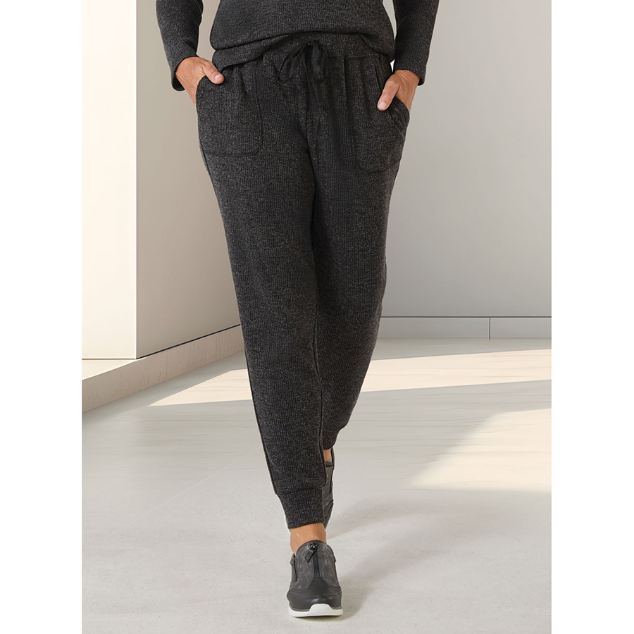 Drawstring elastic waist, easy pullon design, patch pockets cuffed hem for a relaxed fit with effortless, elevated everyday lounging.
