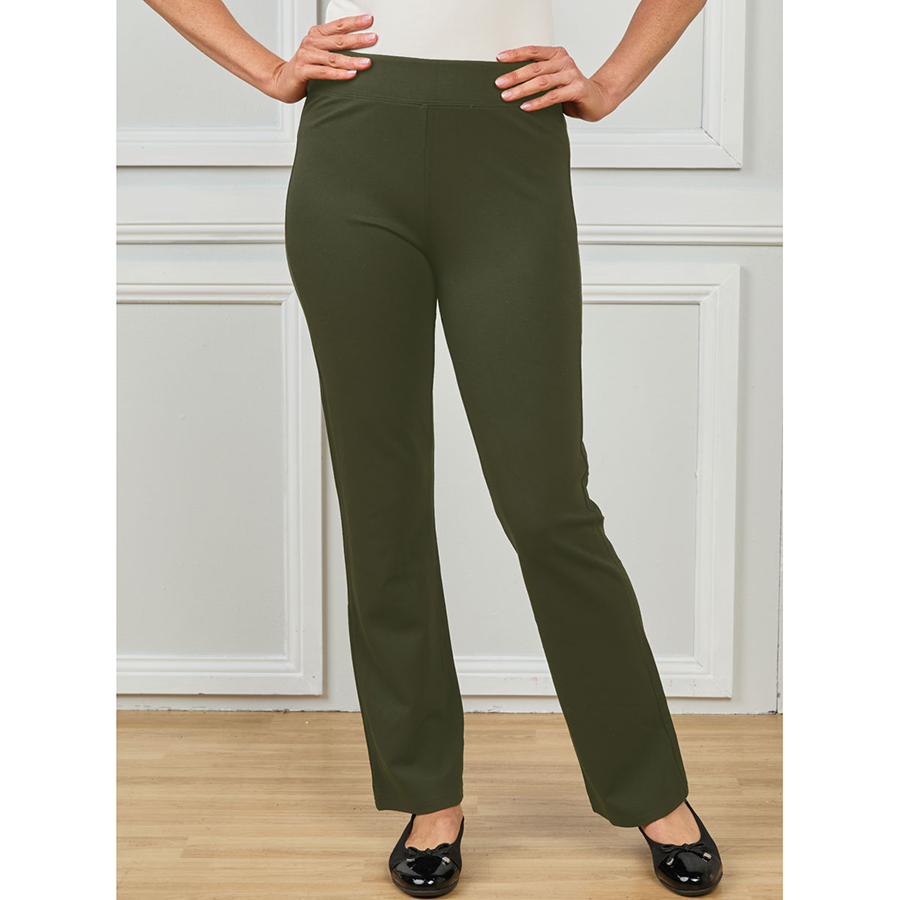 Sleek bootleg ponte pants offering stretch comfort, a smooth pull‑on waist and a flattering full‑length silhouette. 62% Viscose, 33% Nylon, 5% Elastane.