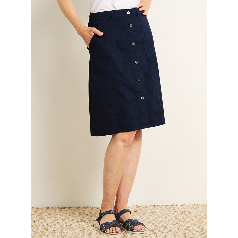 Just like your favourite capris and shorts, this skirt is your new stylish casual must have. Featuring two large front pockets, fully functioning button front. With added comfort waistband with elastic sides and belt loops. 97% Cotton, 3% Elastane.