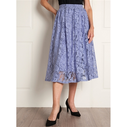 Wide, flat elastic waistband lace skirt. Elegant and easy. Fully lined. 100% Polyester.