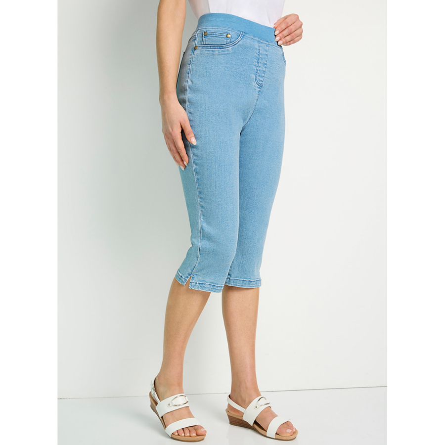 Keep it cool and casual this season with these rib waist capris. In an easy pull on style, these pants have an elasticised waist for comfort and two decorative front pockets. 98% Cotton, 2% Elastane.