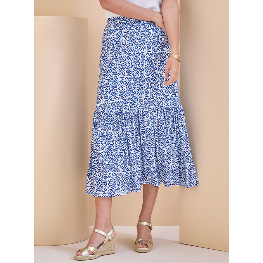 Effortless style meets everyday comfort. This pull-on knit jersey skirt features a flattering tiered design in a soft, stretch blend for an easy, feminine look. 95% Viscose, 5% Elastane.