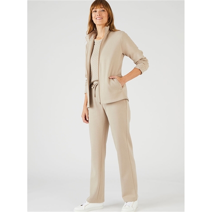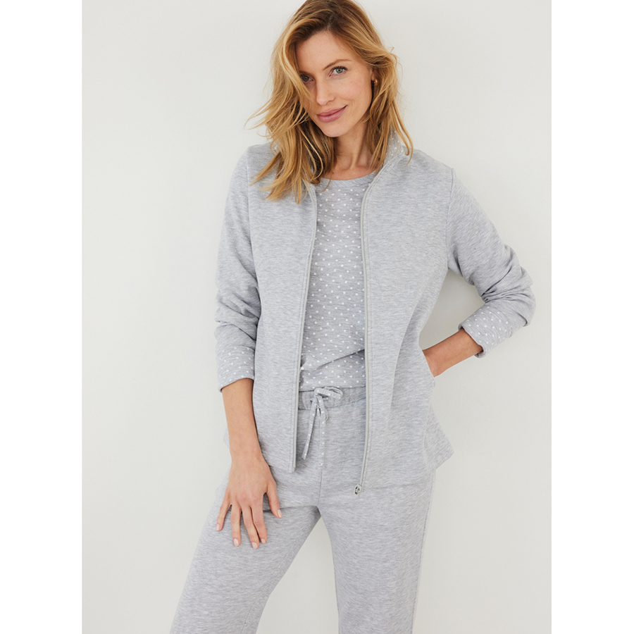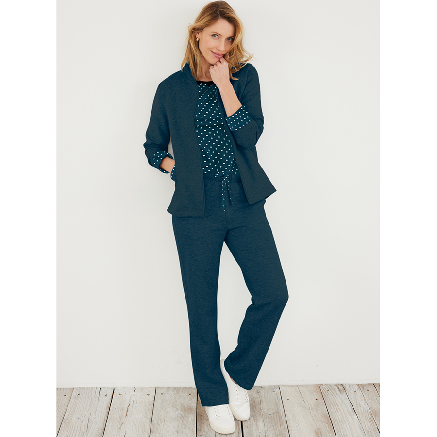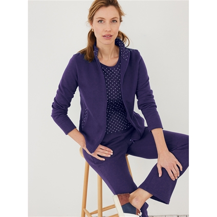 You will love this amazing 3 piece tracksuit! Featuring a jacket with zip front and front pockets with contrast polka dot trim inside the collar. Full length pants with tie front and elastic waist for a comfortable fit and 2 side pockets. Crew neck printed tee featuring a lovely polka dot design. 65% Polyester, 35% Cotton.