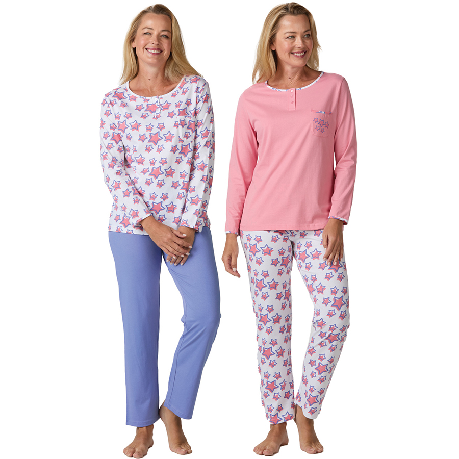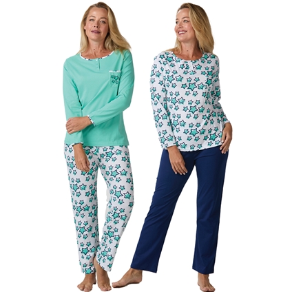 Mix and match cotton PJ set in a 2 pack. Double the comfort. 100% Cotton.