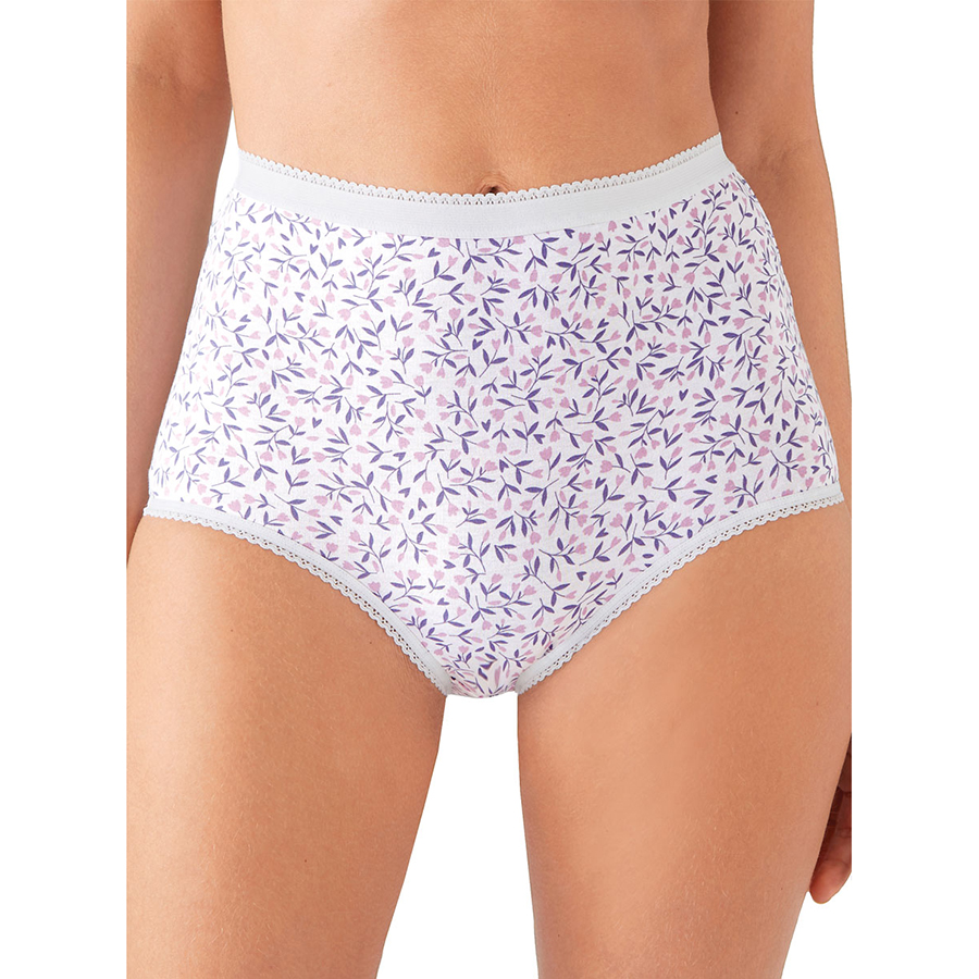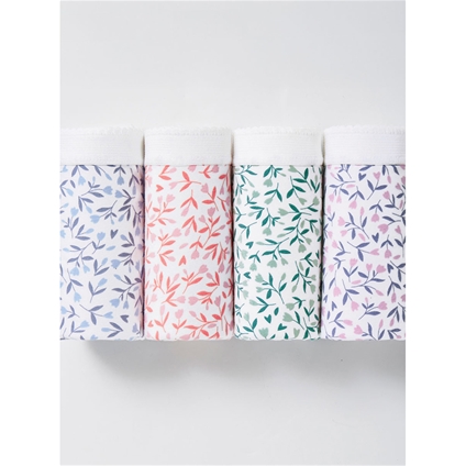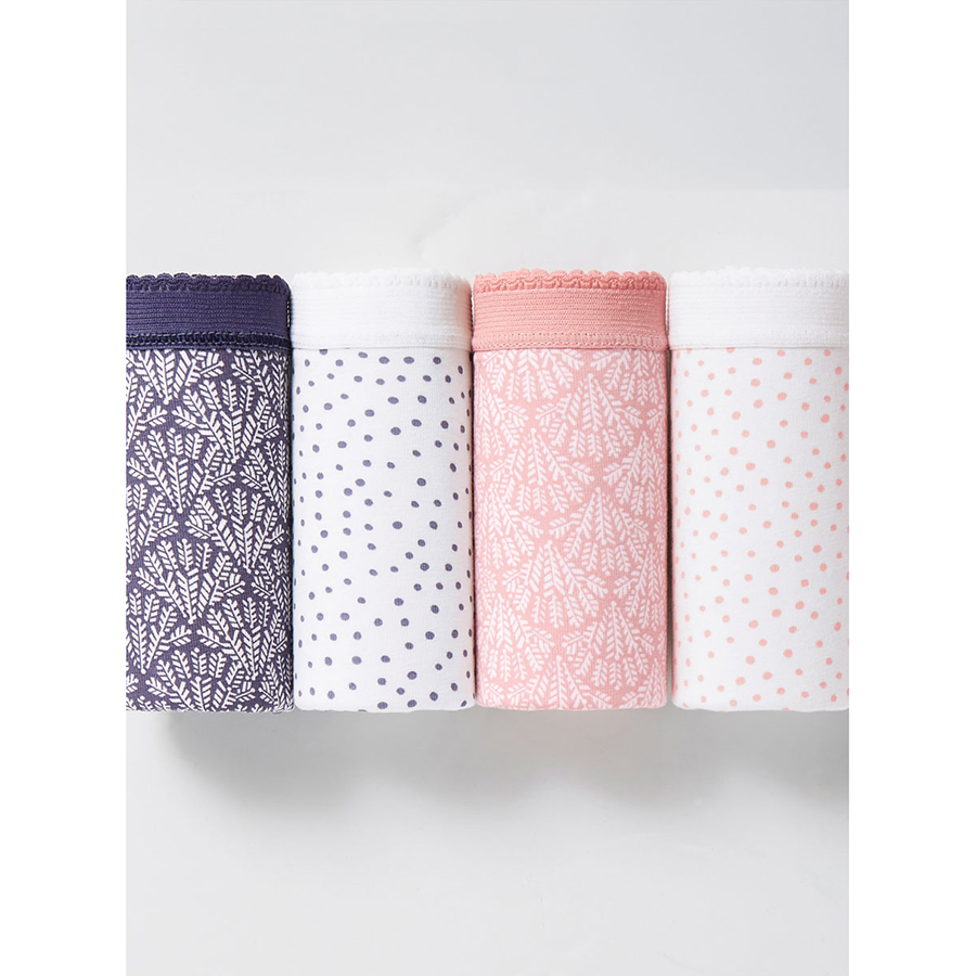 Pack of 4 matching panties in, soft stretchy cotton with elasticated waistband and lined bottom for comfort and support. Cotton, Elastane