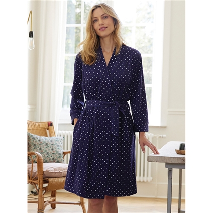 Relax in style! Crafted from a soft cotton blend for comfort, this robe features a playful polka dot print and a flattering waist tie. It’s perfect for cosy mornings or winding down at night. 84% Cotton, 16% Polyester.