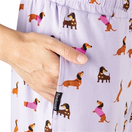 Sleep in comfort with the charming Women’s Dash Dreaming Bamboo Jersey Sleepwear, featuring playful dachshund illustrations. This soft and breathable sleepwear range is designed for a relaxed, comfortable night’s rest. Crafted from a luxurious 62% Bamboo, 34% Cotton, 4% Elastane blend, the fabric feels gentle and lightweight against the skin.
