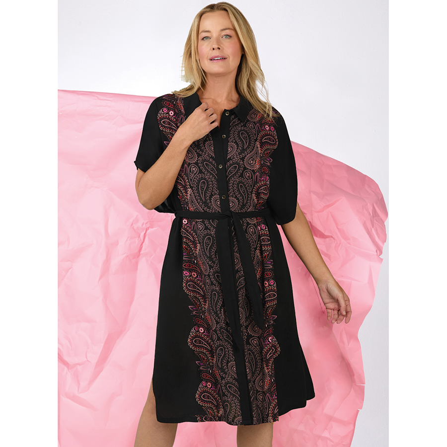 The perfect layer for beach days and beyond. It drapes beautifully for a flattering, relaxed silhouette. Featuring a button-through front and short sleeves, it’s designed for easy wear and all-day comfort. Whether you slip it over your swimsuit or style it with summer staples, this cover-up is your go-to for laid-back elegance. 100% Viscose.