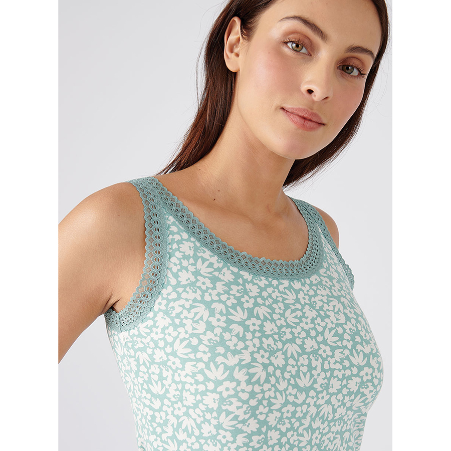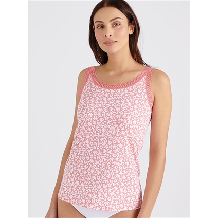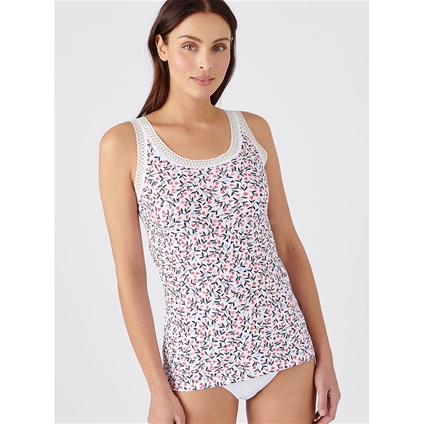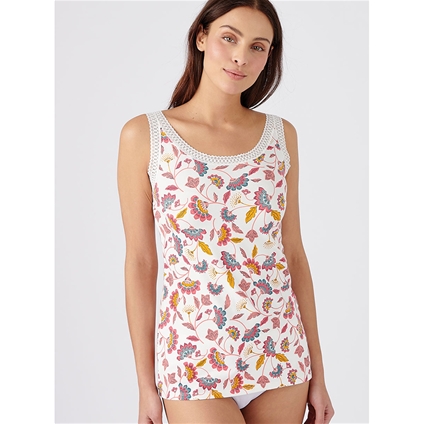 Wide shoulder stretch cotton camisole with lace neckline and armholes. *No thermal properties. 96% Cotton, 4% Elastane.