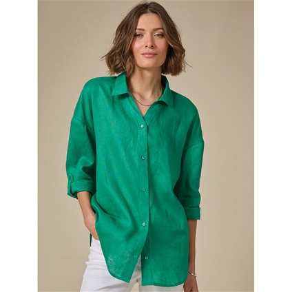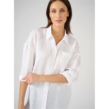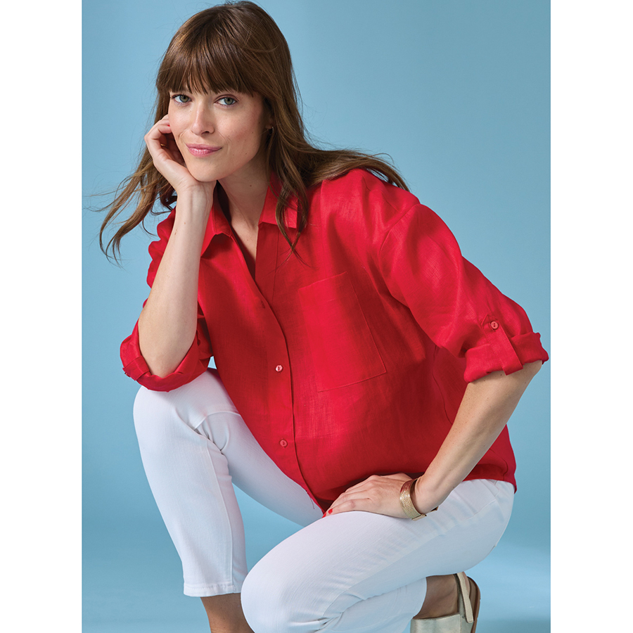 A shirt that is just as comfortable as any tee! This shirt will keep you cool thanks to the linen and cotton blend. A button front with a chest pocket on the left side. Wear the sleeves long or at 3/4 length thanks to the tab back and button. 60% Cotton, 40% Linen.