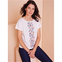 Dress with style thanks to this exquisite blouse with a lovely printed design. A shirt collar and tailored bust darts at the front and back of the shirt. Colour coordinated buttons along the front of the top, ¾ length sleeves with cuffs and small slit for extra decoration. 100% Polyester.