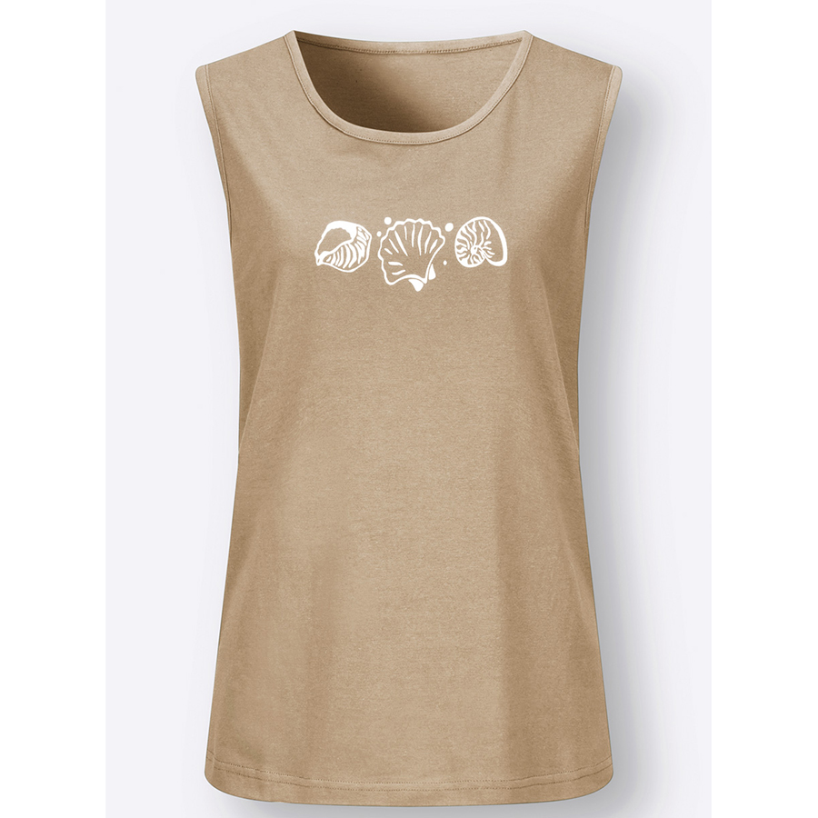 Keep it casual with this lovely cami featuring a bold shell print on the front. Piped round neckline and small side slits on either side of the hem. Made with cotton for breathable comfort. 100% Cotton.