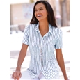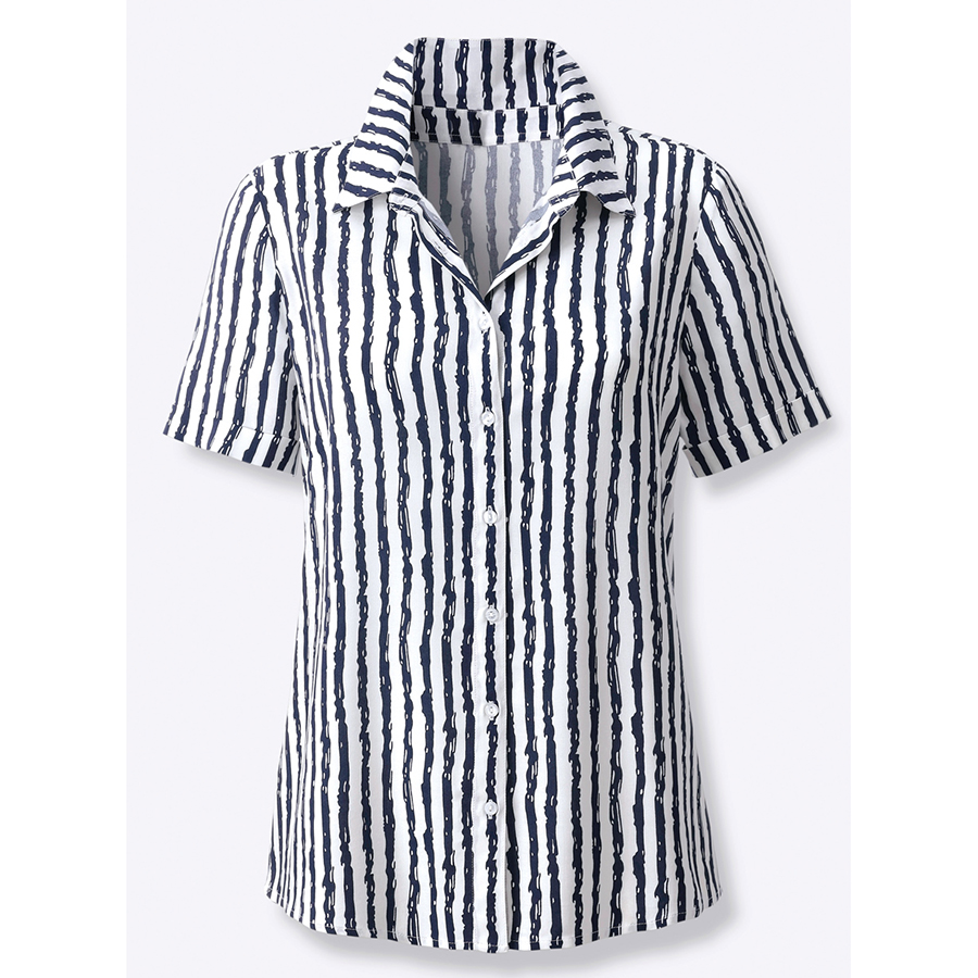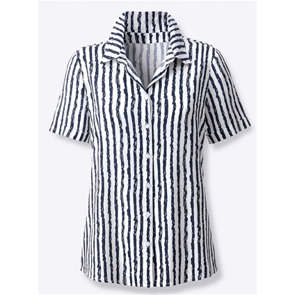 Airy and light fashionable blouse in a wavy stripe. A shirt collar and full-length button placket for ease of wear. Short sleeves with fixed cuffs, a slightly rounded hem and a comfortable fit thanks to the viscose makeup. 100% Viscose.