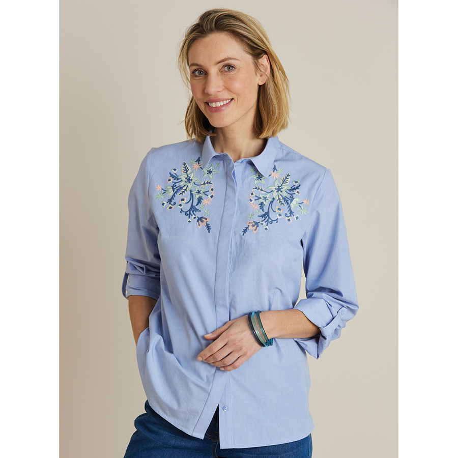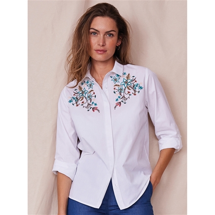 Crafted from 100% cotton, this long-sleeve shirt features roll-tab sleeves and delicate floral embroidery for a polished yet relaxed look. Perfect for effortless everyday style. 100% Cotton.