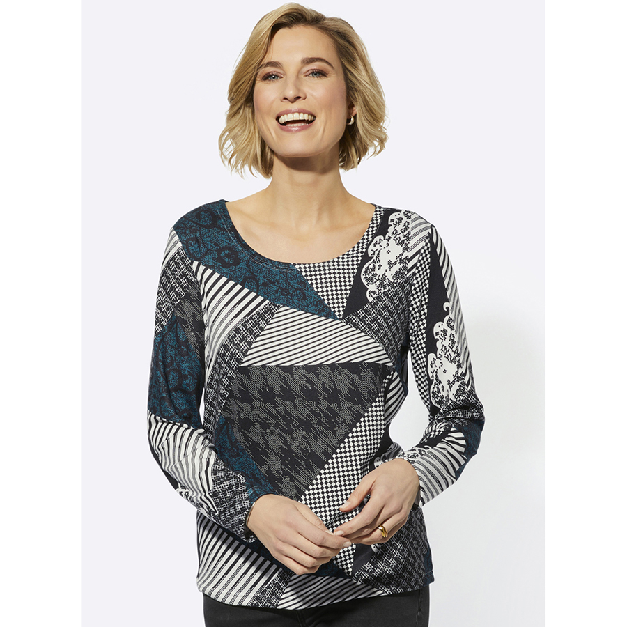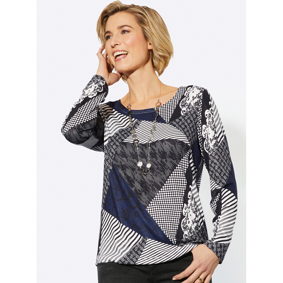 Stay stylish with this all-over fashionably printed top in a pleasantly soft and warming quality. With a round neckline and long sleeves. 95% Polyester, 5% Elastane.