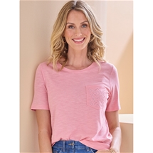 Super soft & super beautiful! T-shirt with metal platelet embellishment on the round neckline. Short sleeves and straight cuffs. 50% Cotton, 50% Modal.