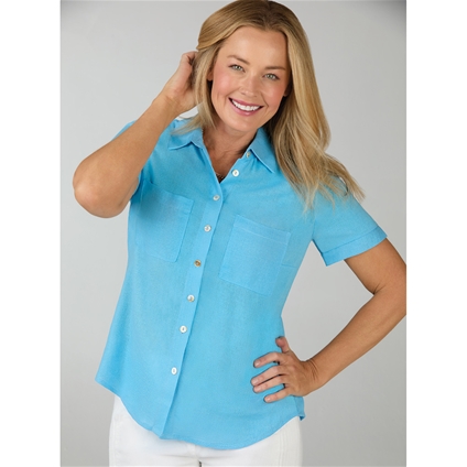 Lightweight button front shirt in an easy to wear linen blend fabric made with viscose for a soft touch. It falls comfortably wide thanks to the box pleat in the back. With bust darts and two chest pockets. Short sleeves with slit cuffs for comfort. Slightly rounded hem. 70% Viscose, 30% Linen.