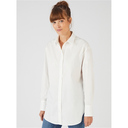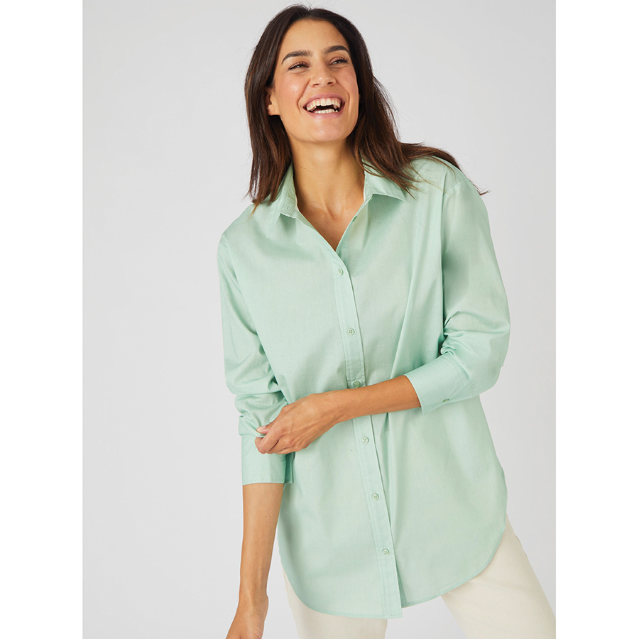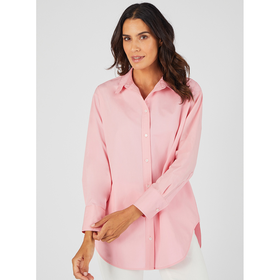 Pure cotton longline shirt with scoop front and back hem. Comes in a range of soft feminine colours. 100% Cotton.