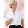 The elaborate lace trim on the shawl collar gives this blouse its charm. Button placket with jewel-like buttons. Shaping bust darts and side slits for a flattering fit. Easy-care fabric. 100% Polyester.