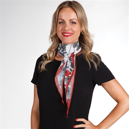 Scarf: 80gsm Chiffon, 140W x 38H cm