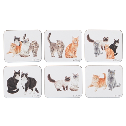 6 pack cat-themed coasters: featuring Ragdoll and Tuxedo designs