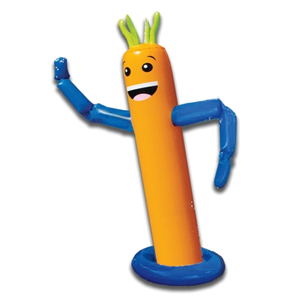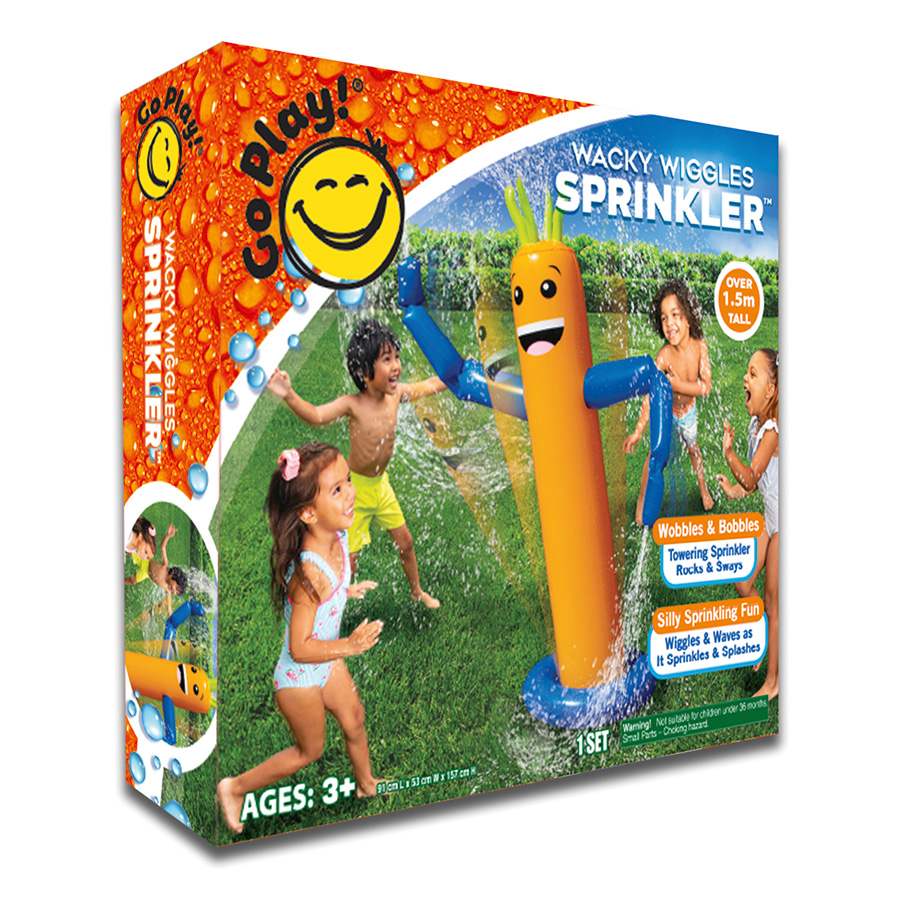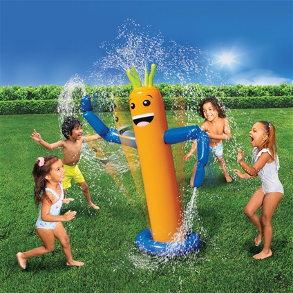 Standing over 1.5 m tall, this inatable sprinkler wobbles and bobbles spraying water from its head and arms for silly sprinkling fun! It can easily attach to any garden hose and the water-weighted base adds stability. Ages 5+ Adult supervision required.