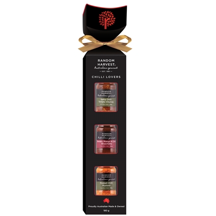 Spicy Chilli Tomato Chutney: 60g Tomato (52%), Sugar, Vinegar, Apple, Onion, Tomato Paste (7%), Garlic, Salt, Chilli (<1%), Parsley.