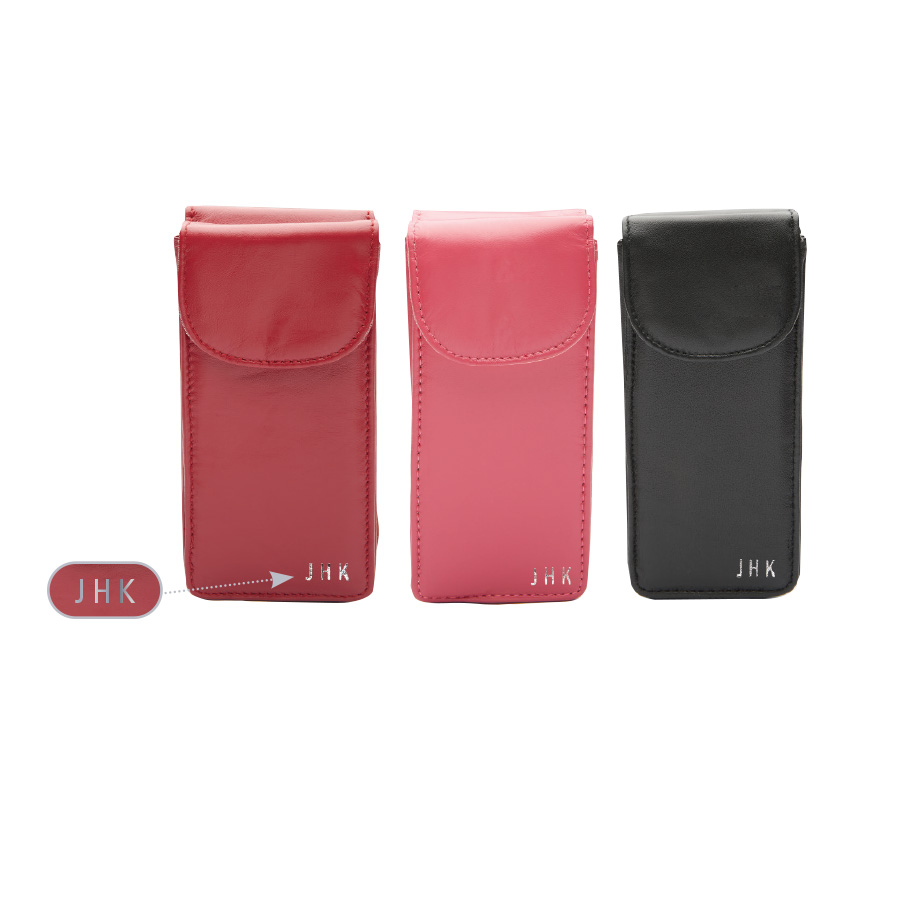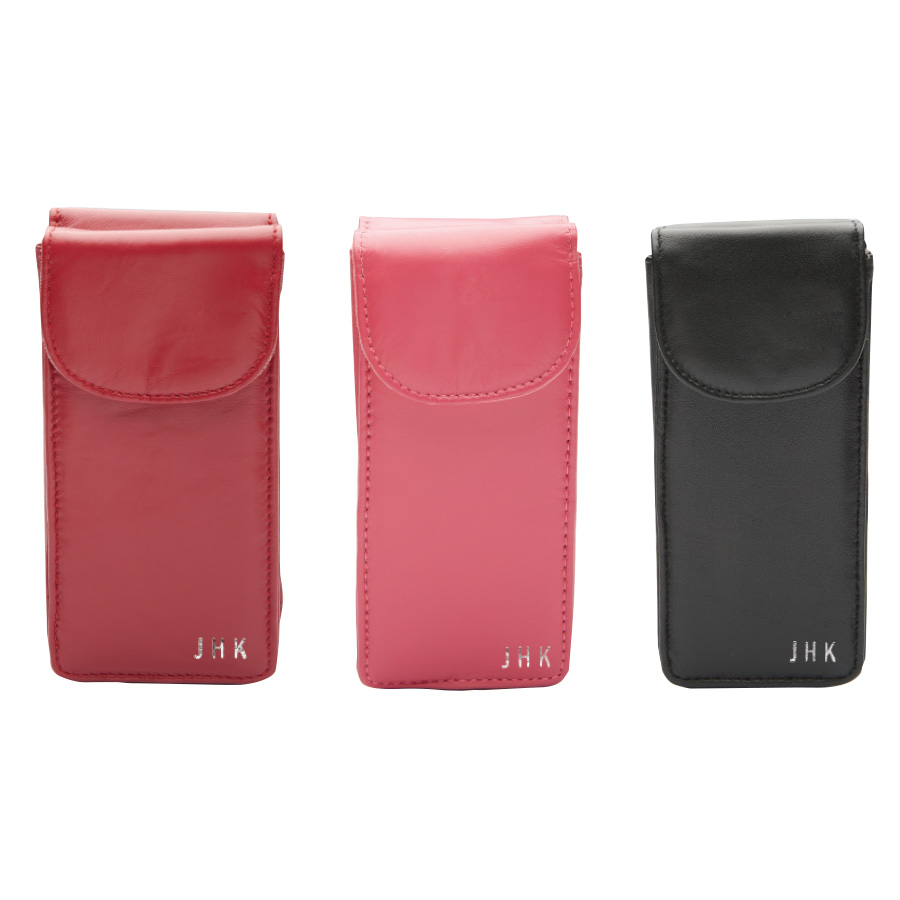 Why carry two glass cases when you can keep two pairs in one soft leather pouch. Measuring 17.5H x 7.5W cm, there is a separate compartment for each pair. Ideal for reading and sun glasses. Up to 3 initials.