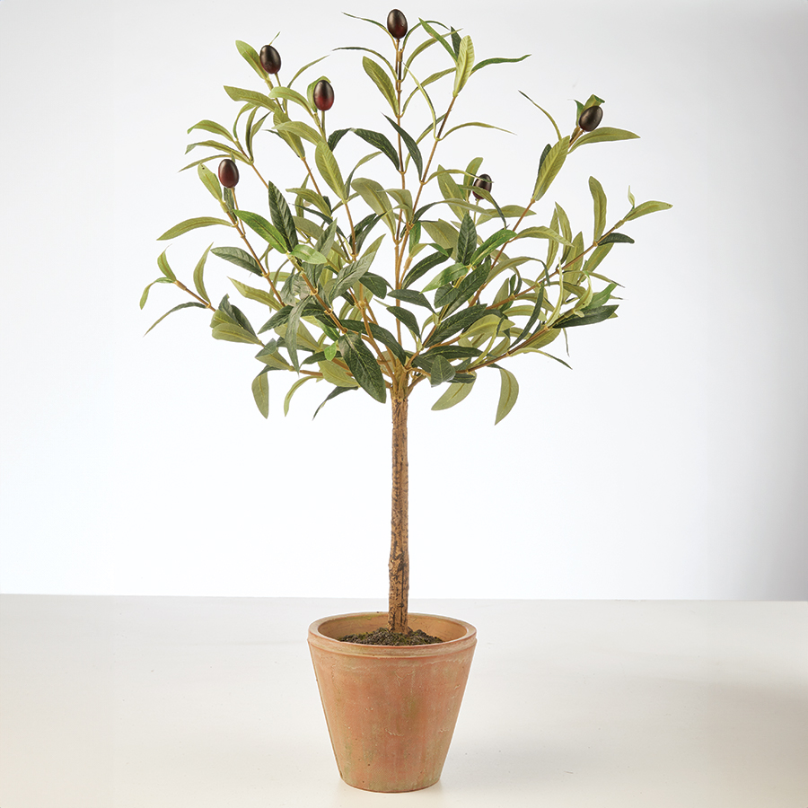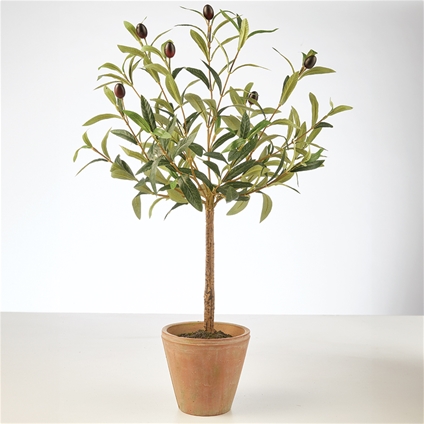 With their pretty grey-green leaves and decorative fruit it’s no wonder that olive trees have become such popular ornamentals. Now you can enjoy the good looks without the worry of providing enough sun – you can even enjoy this one indoors! Very realistic in plastic, it stands 63.5 cm tall in its 14 cm diameter terracotta pot. Perfect for the patio, you could also create a stylish entrance by placing one each side of your front door.