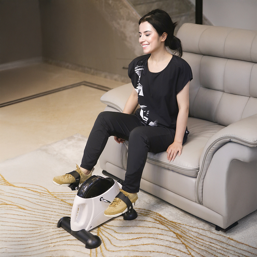 Keep moving, even while sitting. This versatile pedal exerciser is perfect for home or office use – place it under your desk or in front of the sofa to work your legs, or on a table to tone your arms. Regular pedalling can help improve blood circulation, boost strength and support overall fitness, even during long periods of sitting. Track your progress with the built-in LCD monitor (AAA battery not included), showing time, distance, rotations, total count and calories burned. The adjustable tension knob allows you to tailor your workout, while non-slip pedals and a portable handle make it safe and easy to move wherever you need it.