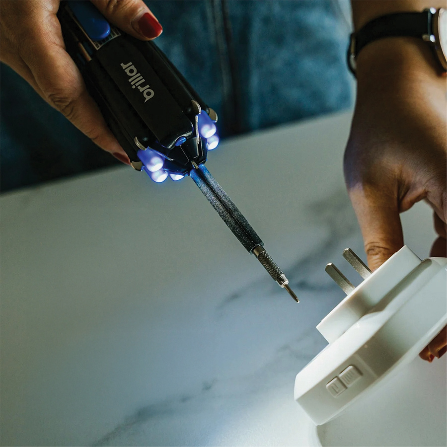 Tackle any task with the Multifunction Screwdriver Set with LED Light. This 8-in-1 tool includes 8 screwdriver heads and 6 built-in LEDs to brighten your workspace – perfect for tight, dark spots. Compact, versatile and essential for home or on-the-go repairs. Requires 3 AAA batteries (not included). Handy, bright and reliable.