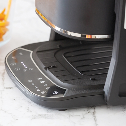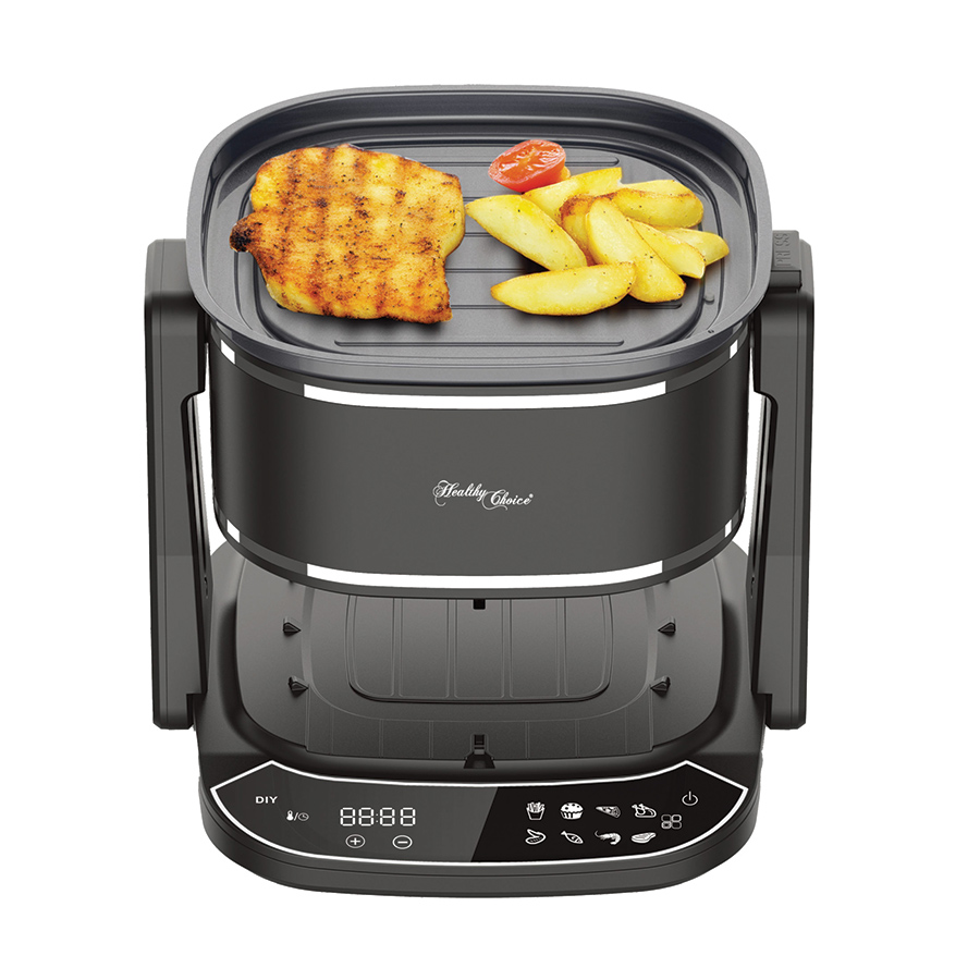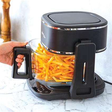 Enjoy the flexibility of air fry or grill cooking in one smart, space-saving appliance. Use the 5L clear glass cooking basket to air fry golden, crispy favourites or flip the unit to grill steaks, seafood and vegetables to perfection on the Teflon grill plate. The glass basket allows to monitor your food cook without opening it and the easy digital control panel features 8 preset programs plus DIY manual settings. With dishwasher-safe accessories and a compact, bench-friendly design, everyday cooking and cleaning is simple and convenient.