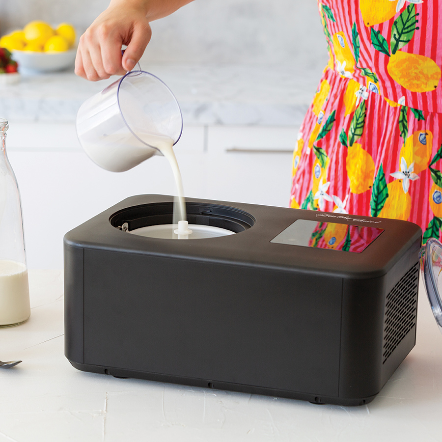 Pour, press and scoop icecream your way in no time. Create your favourite frozen treats: Gelato, Sorbet, Icecream, Frozen Yoghurt!
