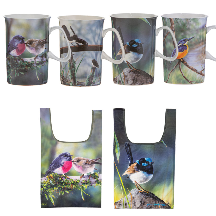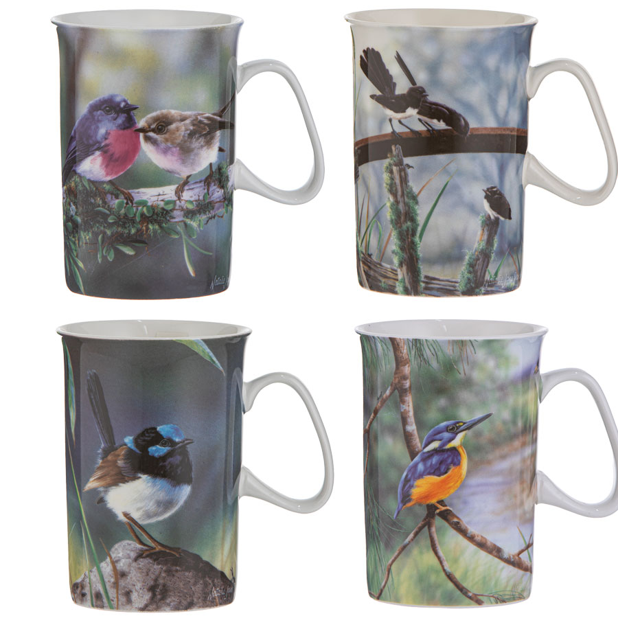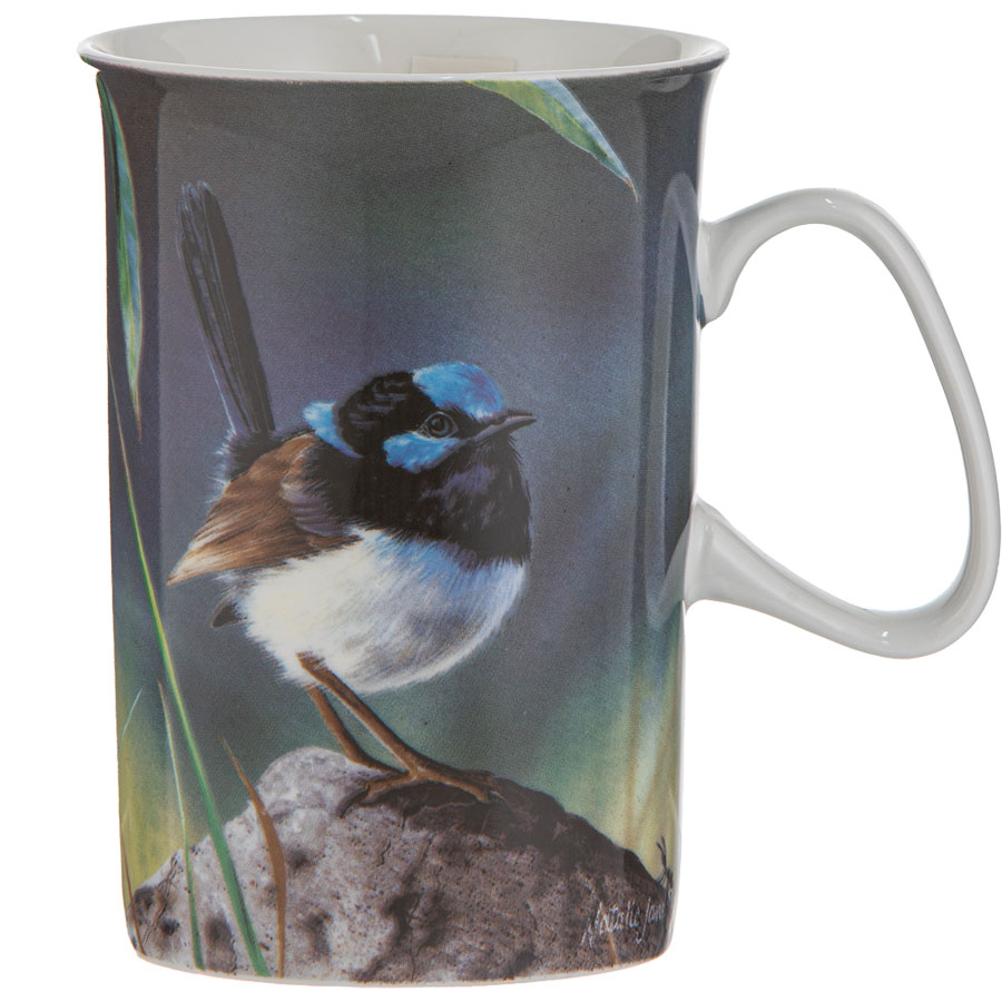 Coffee Mug: Beautiful bone china mugs featuring exquisite drawings of Australian native birds, including the Blue Wren, Pink Robin, Kingfisher and Wagtail, illustrated by Natalie Jane Parker. The intricate designs celebrate the charm and detail of Australia’s small birdlife, making this collection a perfect choice for bird lovers. These 330ml mugs are designed for everyday use and are both dishwasher and microwave safe for convenience. Combining artistic beauty with practicality, they make a thoughtful gift or stylish addition to any home.