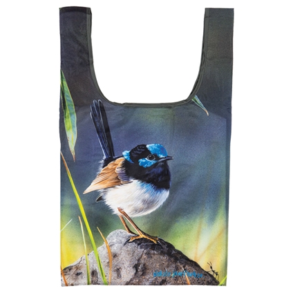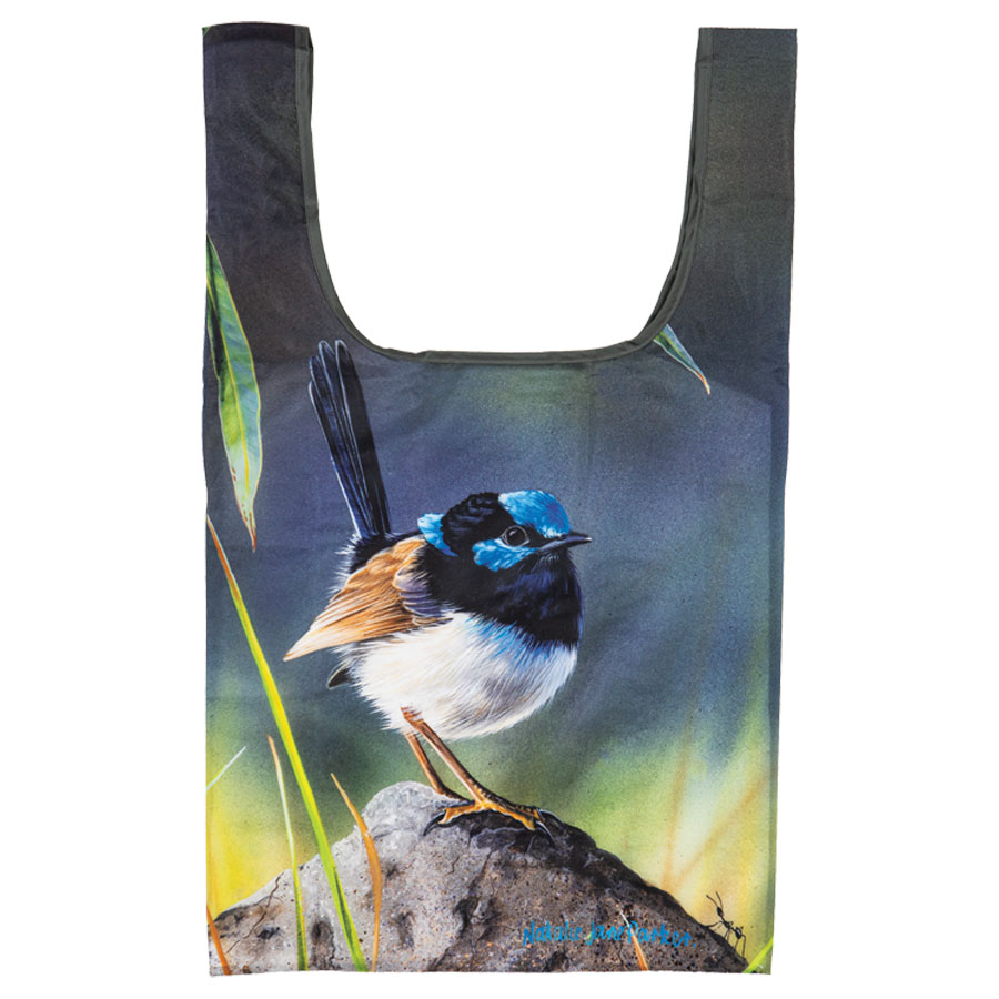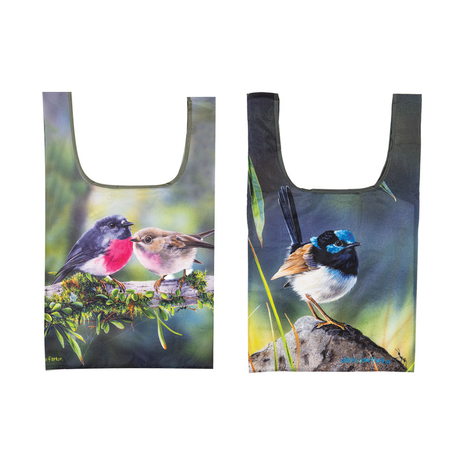 Shopping Bag: This eco-friendly rPET shopping bag showcases the same beautiful bird artwork as the matching mug collection, featuring Blue Wren and Pink Robin designs by Natalie Jane Parker. Celebrating the delicate charm of Australia’s native birdlife, the intricate illustrations add colour and character to an everyday essential. Generously sized at 36 x 64 x 15 cm, this reusable bag is lightweight yet durable – perfect for shopping, errands or daily use. A practical and stylish choice for bird lovers, it combines sustainability with artistic appeal.