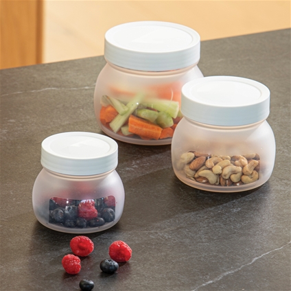 This 3pk of Assorted Jars are compact, reusable and sustainable. Airtight and safe for dishwasher, microwave and freezer, they’re perfect for snacks, shopping, parties and picnics – practical storage anytime, anywhere.