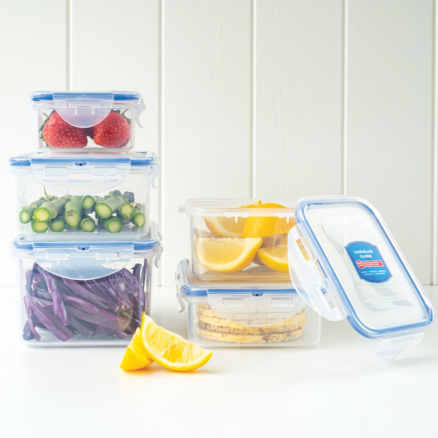 The Lock&LockTM Classic 5 Piece Food Storage Set offers smart, airtight storage with a patented four-hinge locking system and silicone seal to keep food fresher for longer. Built from durable, impact-resistant material, the containers resist heat, stains and scratches – perfect for daily use and transport. Designed for efficiency and sustainability, Lock&LockTM delivers practical, long-lasting storage solutions trusted worldwide. Includes one rectangular container each of 350ml, 470ml, 550ml, 850ml and 1.1L.